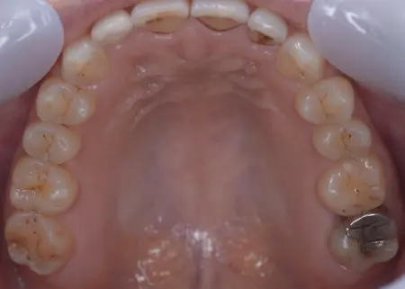 拝見したところ、噛んだ際に上下の歯の間に隙間が生じる「オープンバイト」が見られました。
