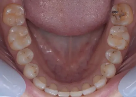 まず上下にワイヤー装置を装着し、歯を少しずつ移動させて噛み合わせを改善しました。